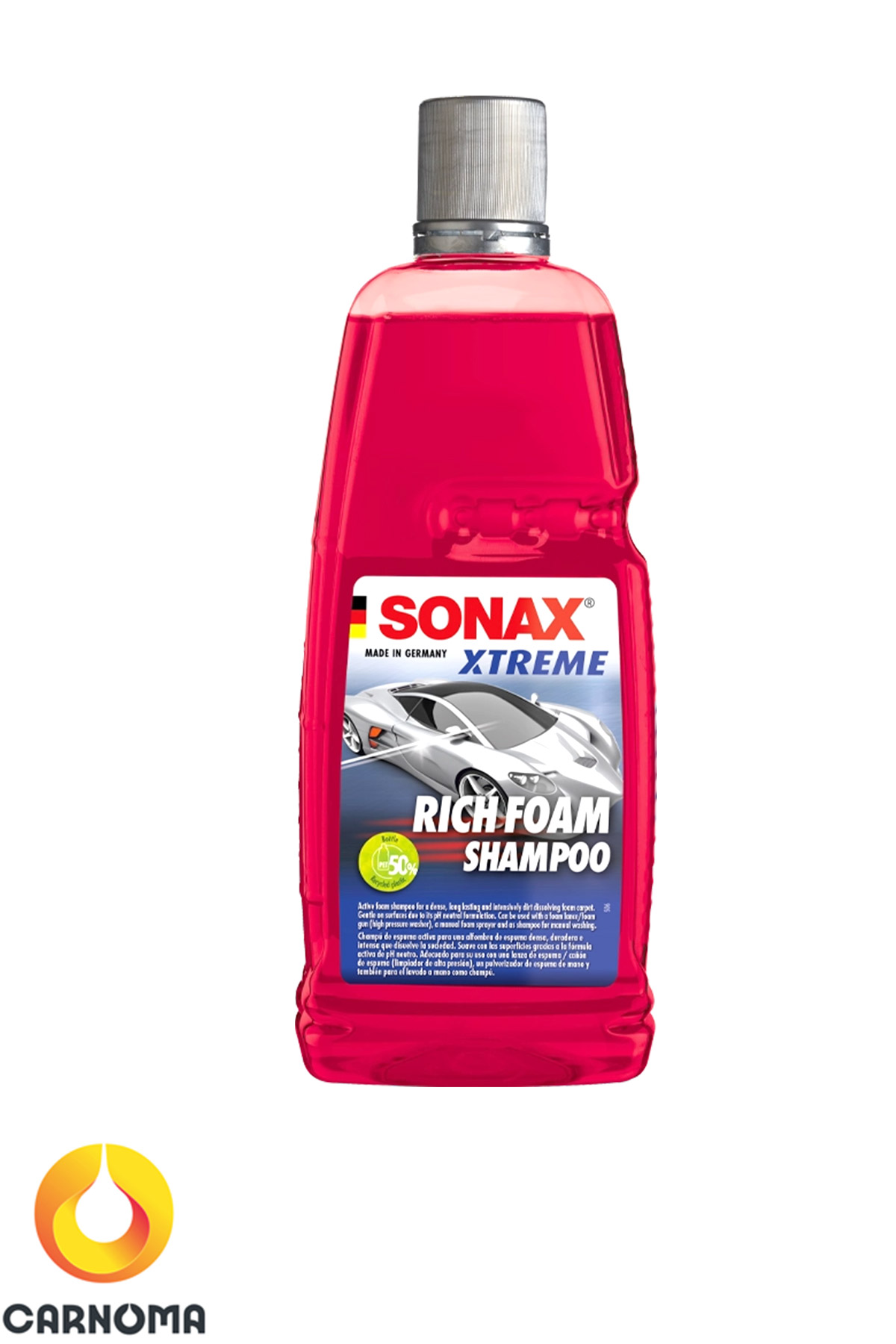 شامپو ریچ فوم سری اکستریم سوناکس (SONAX XTREME Rich Foam Shampoo) یک شویندهی بدون فسفات، فرمول pH خنثی و با عملکرد بالا است که برای شستوشوی کامل بدنهی خودرو طراحی شده است. این محصول با فرمولاسیون غلیظ و فعال خود، فومی متراکم، پایدار و قدرتمند ایجاد میکند که آلودگیها و ذرات چربی را از سطح رنگ جدا کرده و بدون آسیب به رنگ بدنه، پاکسازی مینماید.